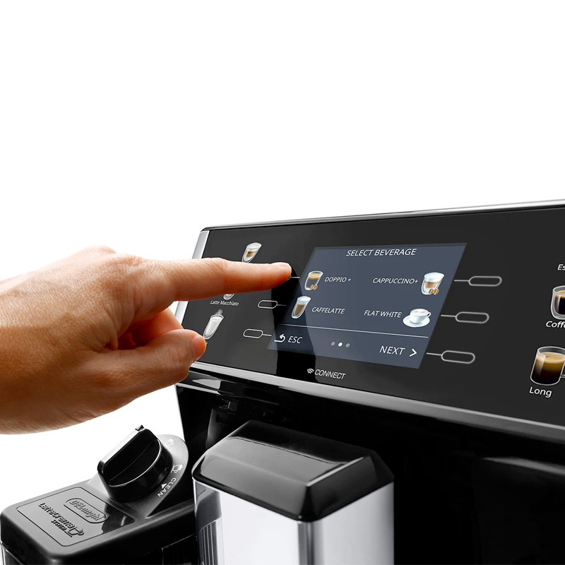 Café e bebidas de leite à distância de um simples toque de um botão, permite 2 chávenas em simultâneo. Espuma de leite densa e cremosa graças ao sistema automático LatteCrema System. Crie novas receitas, personalize a quantidade e o aroma das suas bebidas, memorize perfis de utilizador através do ecrã ou da App Coffee Link. Ecrã premium e intuitivo TFT de 3.5''.