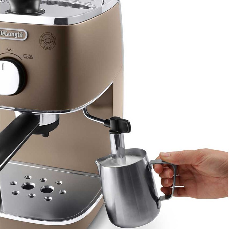 Mistura ar, vapor e leite para produzir uma espuma cremosa, conseguindo um cappuccino perfeito.